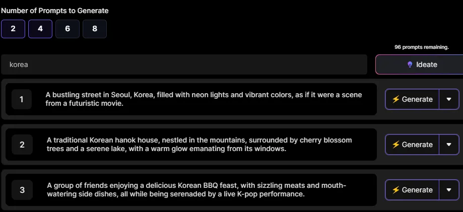 Prompt Generation은 특정 단어를 넣으면 프롬프트를 생성해주는 기능