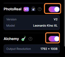 PhotoReal과 Alchemy가 켜져있으면 크레딧소모가 매우 심함
