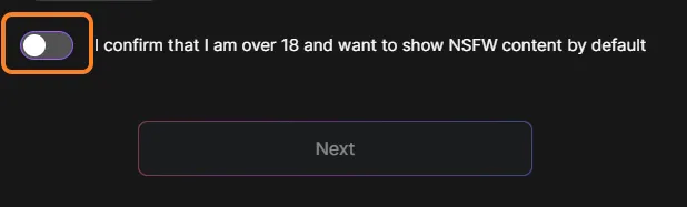 I confirm that I am over 18 and want to show NSFW content by default 설정을 끈 상태로 가입(유해 콘텐츠를 보이지 않도록 설정)