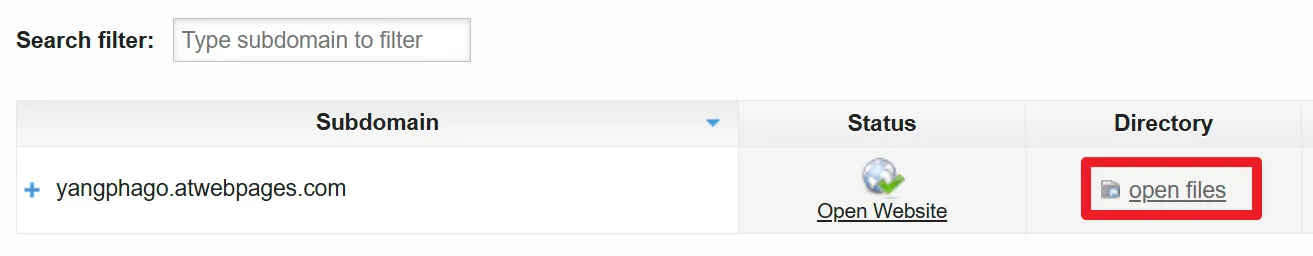 아래 예시는 설정한 yourname.http://atwebpages.com가 무료 서브도메인