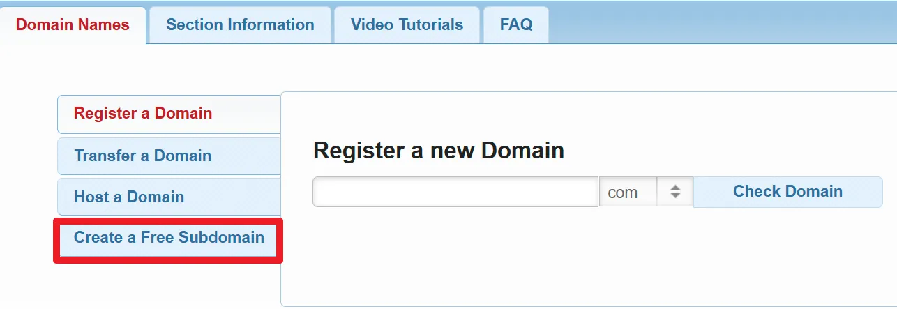 무료 하위 계정을 선택(create a Free Subdomain)선택