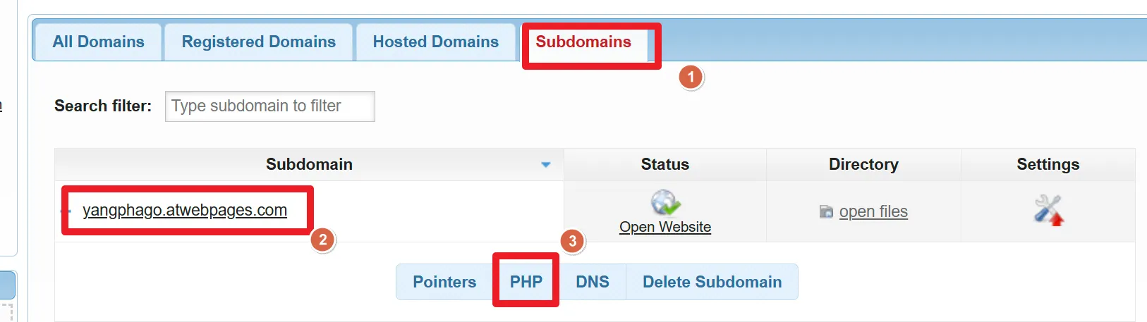 서브도메인 설정을 PHP로 변경