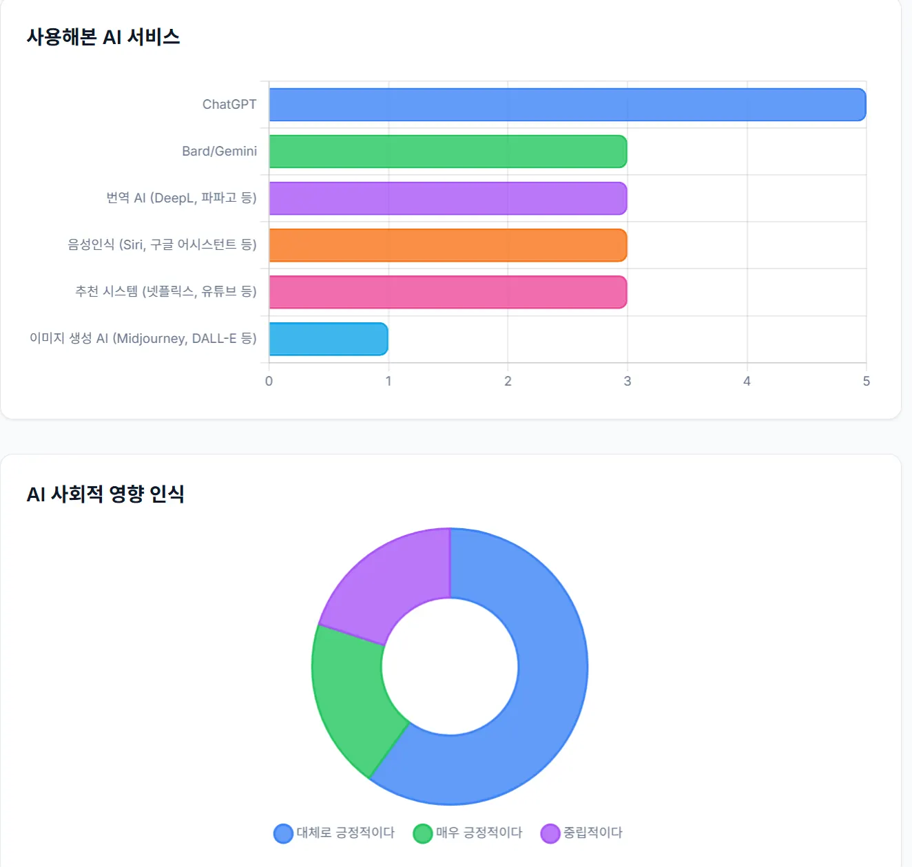 2지 선다, 4지 선다 같은 경우는 차팅 라이브러리를 이용해 깔끔하게 시각화하자.