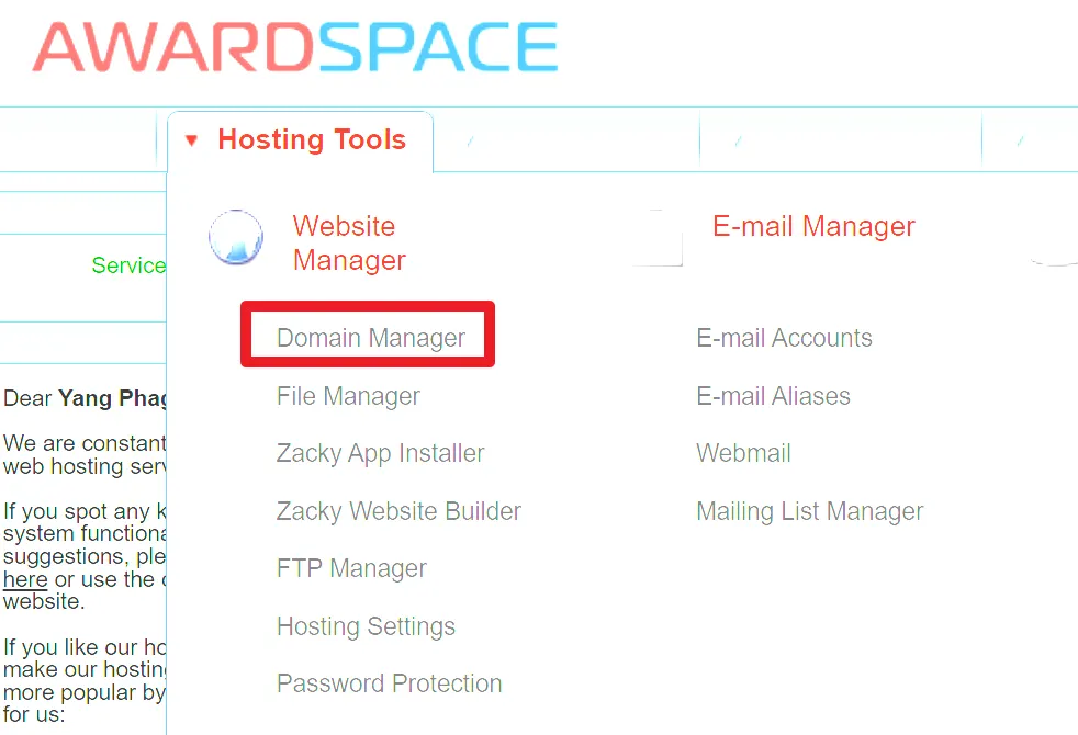 3-2.Awardspace 가입 후 도메인 셋팅