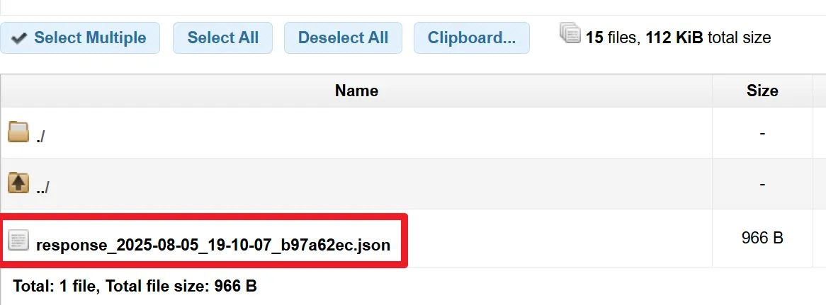 응답시 아래 그림처럼 response폴더에 ‘응답시간이 기록된 Json’파일로 저장됨