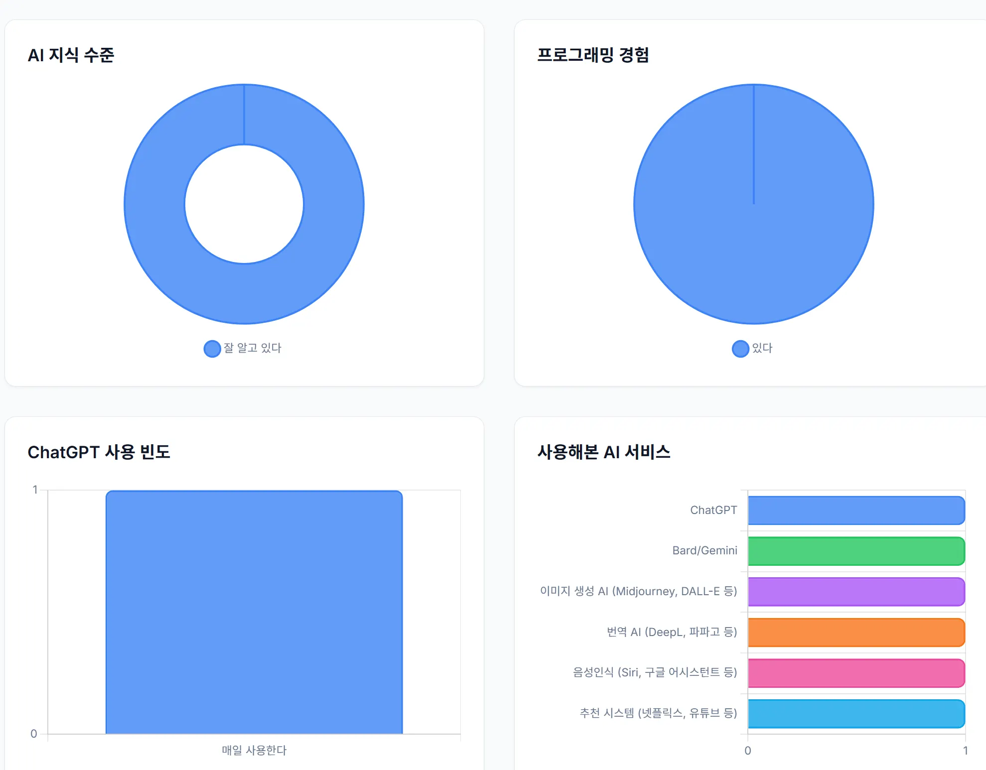 설문결과를 보다 빠르게 통계적으로 파악할 수 있도록, 대시보드 형태로 만드는 것이 바람직