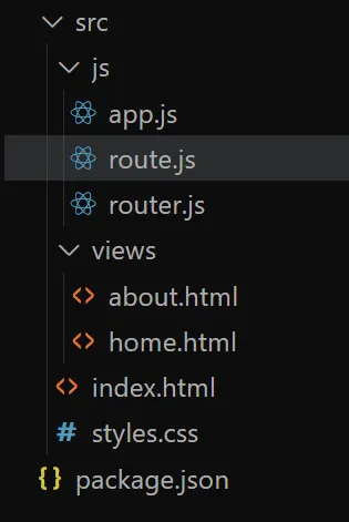 <p>해당하는 HTML partial을 fetch로 가져와 <code>#app</code>에 주입함.</p>