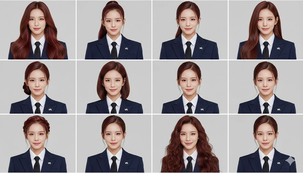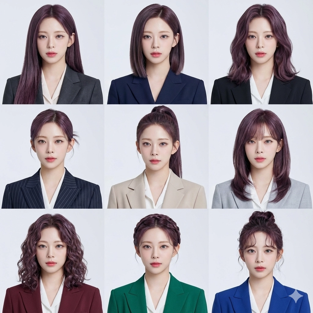 얼굴은 어떤 식으로든 변경하지 말고, 오직 의상, 배경, 스타일링만 깔끔하고