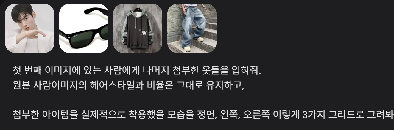 첫 번째 이미지에 있는 사람에게 나머지 첨부한 옷들을 입혀줘.