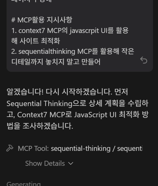 2. sequentialthinking MCP를 활용해 작은 디테일까지 놓치지 말고 만들어