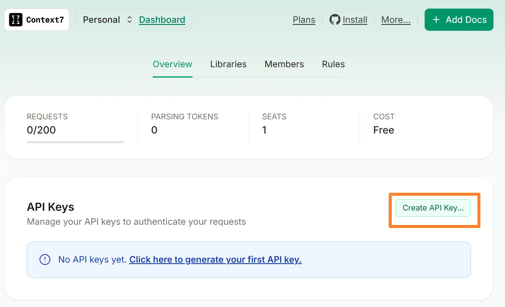 특히, Context7 MCP서버 사용을 위해서는 가입 후 API키 발급 필요(무료)
