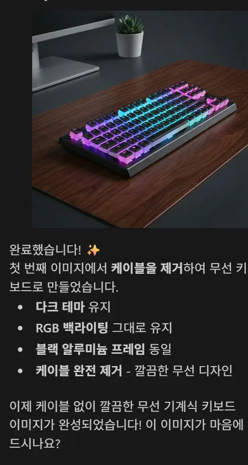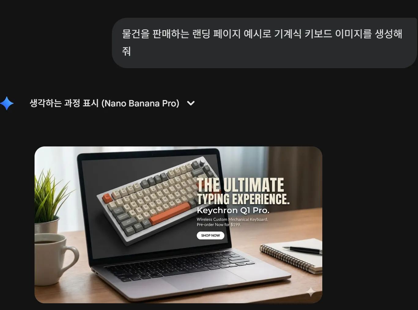 일반적으로 gemini3에서 이미지 생성을 요구하면 아래 그림과 같이 완성된 그림을 다운로드 할 수 있으나, 수정은 모두 텍스트 프롬프트를 추가로 입력해야 함