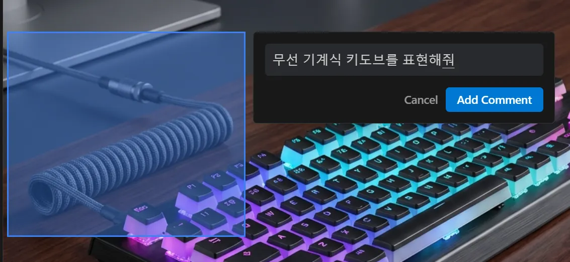 반면 안티그래비티에서 생성된 이미지는 내가 수정하고 싶은 부분만을 드래그 한뒤, 수정요청을 즉각적으로 할 수 있음