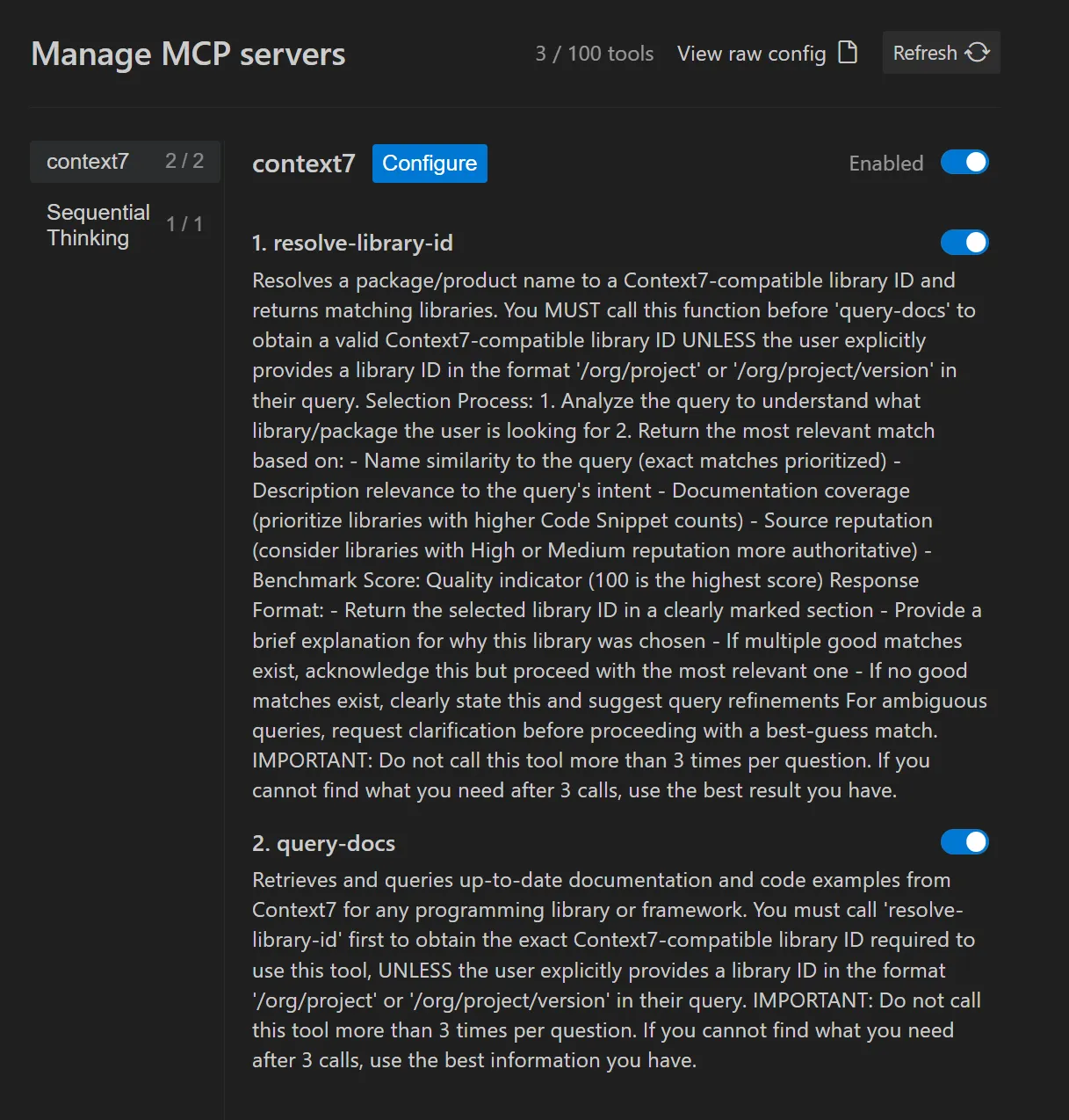 기본적으로 많이 사용하는 context7과 sequential-thinking MCP를 설치해보기!