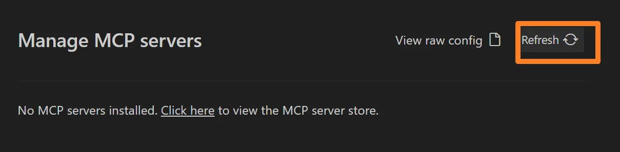MCP설정이 끝났으면 저장 후에, ‘refresh’버튼을 한번만 클릭