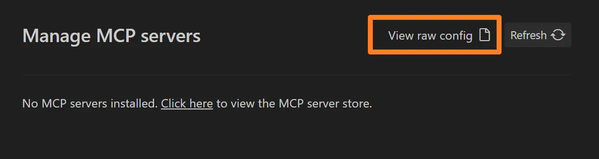 기본적으로 store에 보이는 MCP 외에 별도 MCP를 설치하기 위해서는 다음 순서대로 이동