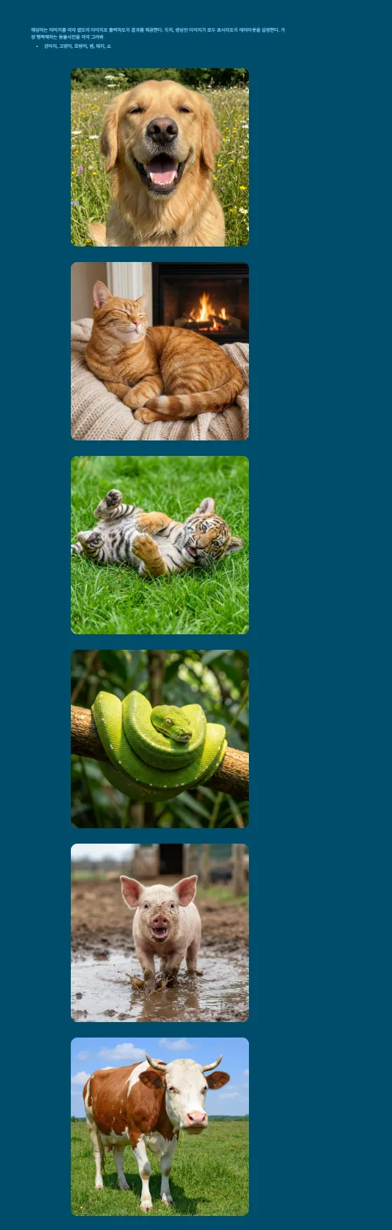 - 강아지, 고양이, 호랑이, 뱀, 돼지, 소