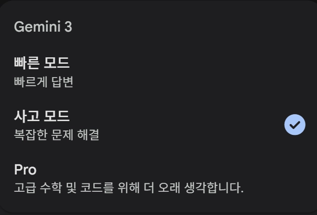 해결책2: 잠시 pro모드를 접고, 사고모드 또는 빠른 모드로 전환해보기