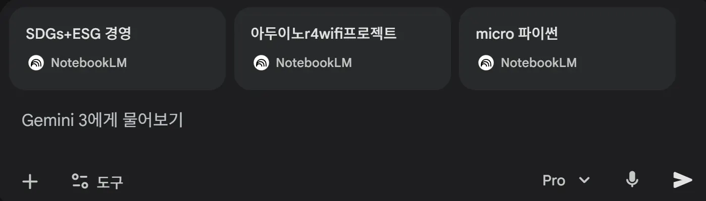 gemini 실행 후 내가 기존에 만들어 놓은 노트북LM을 선택할 수 있음