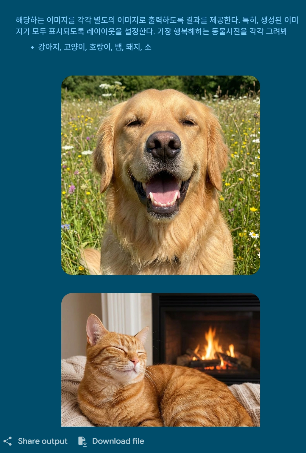 나노 바나나를 활용해 가장 행복해하는 동물사진을 각각 그려봐