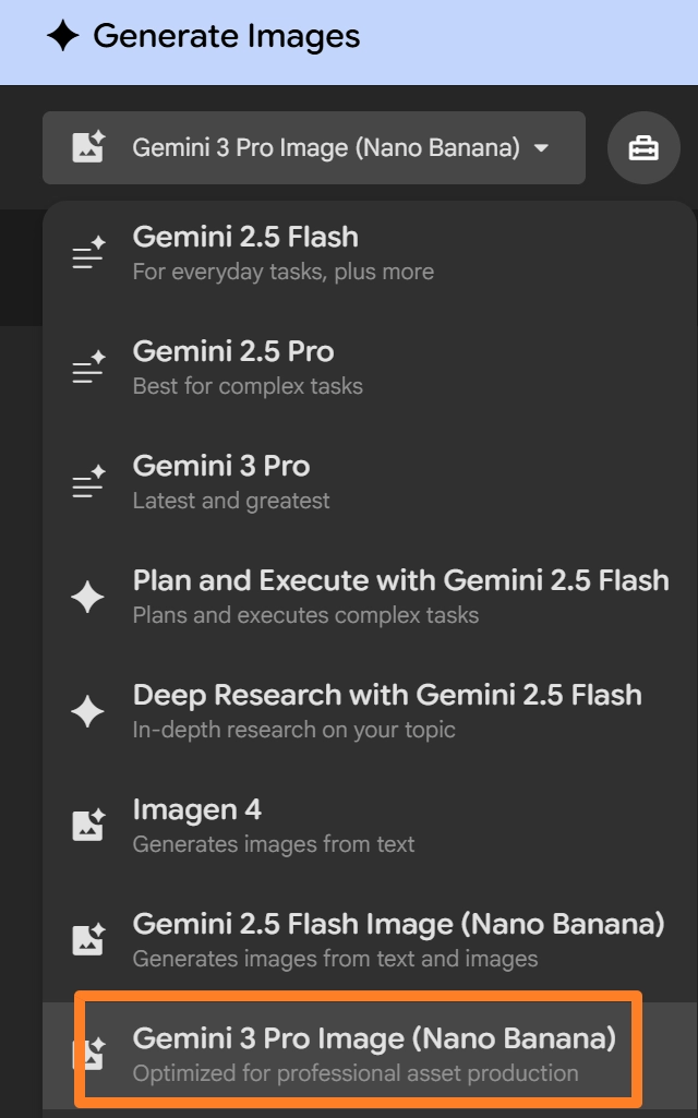 특히, 이미지 생성의 경우 나노바나나를 선택해야 원하는 결과를 얻을 수 있음