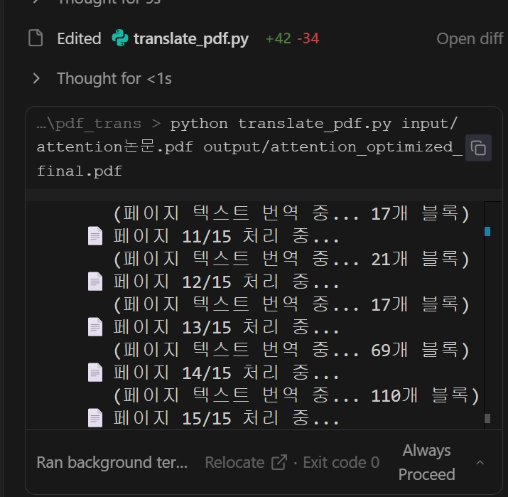 - `output` 폴더에서 번역된 PDF 파일들 확인