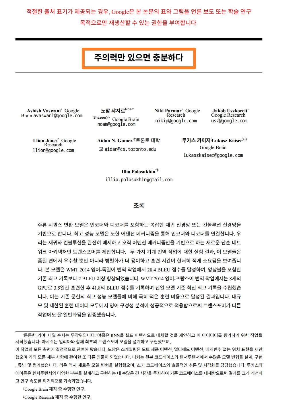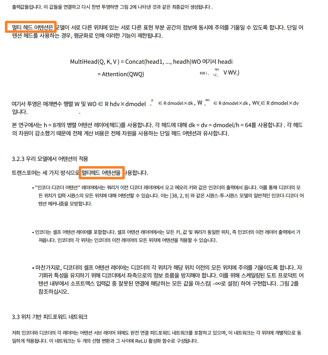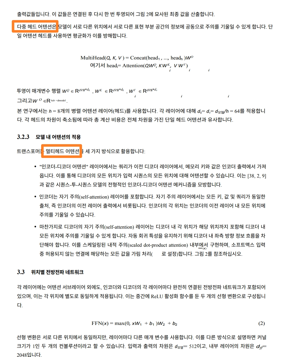 ’이란 동일한 단어를 어떤때는 다중헤드 어텐션, 또 어떤 경우에는 멀티헤드 어텐션으로 즉 통일감없이 번역하는 부분이 일부 발견됨