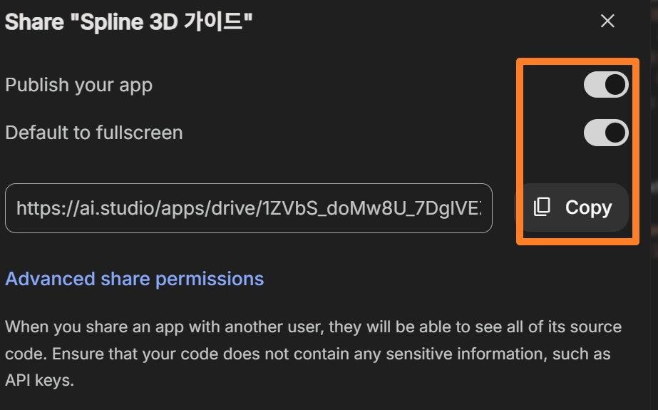결제 설정이 두렵다면 , 공유버튼을 눌러 바로 앱을 공유할 수 도 있음