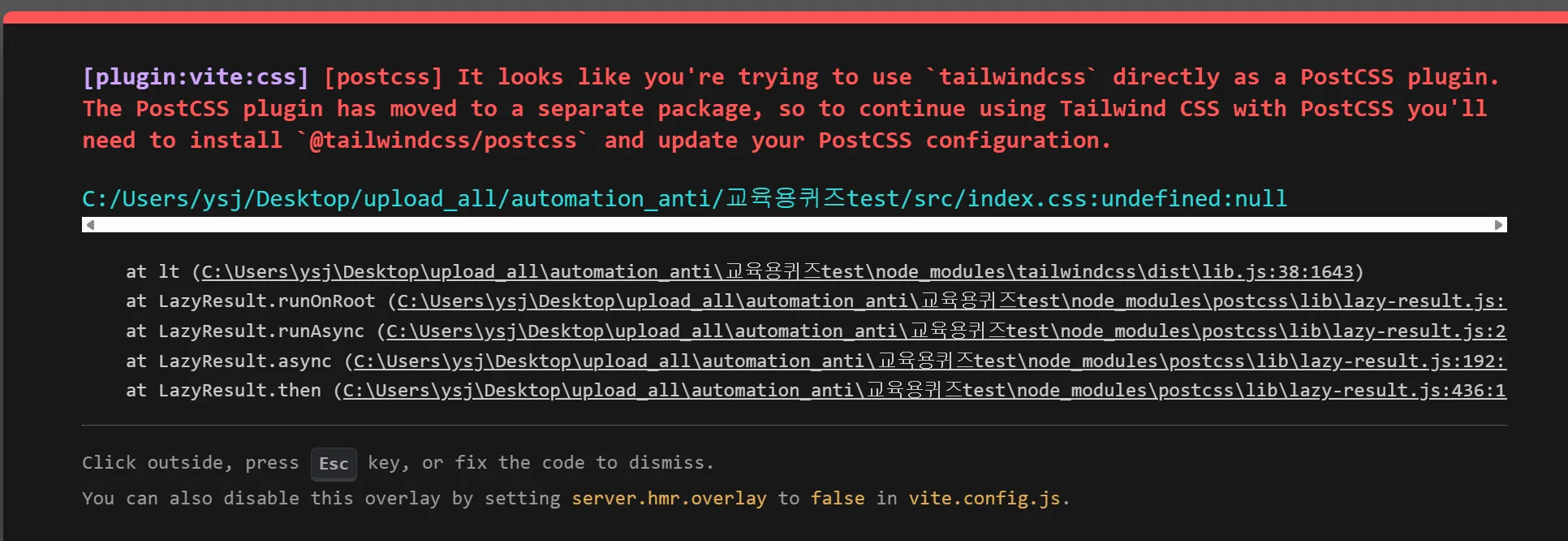 - 플러그인 오류 없도록 처음부터 Tailwind CSS연결 테스트
