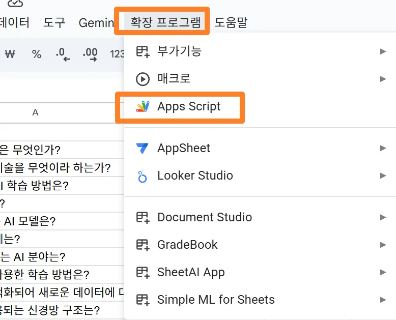 2. 구글 스프레드시트를 앱스스크립트를 활용해 데이터를 주고받을꺼야.