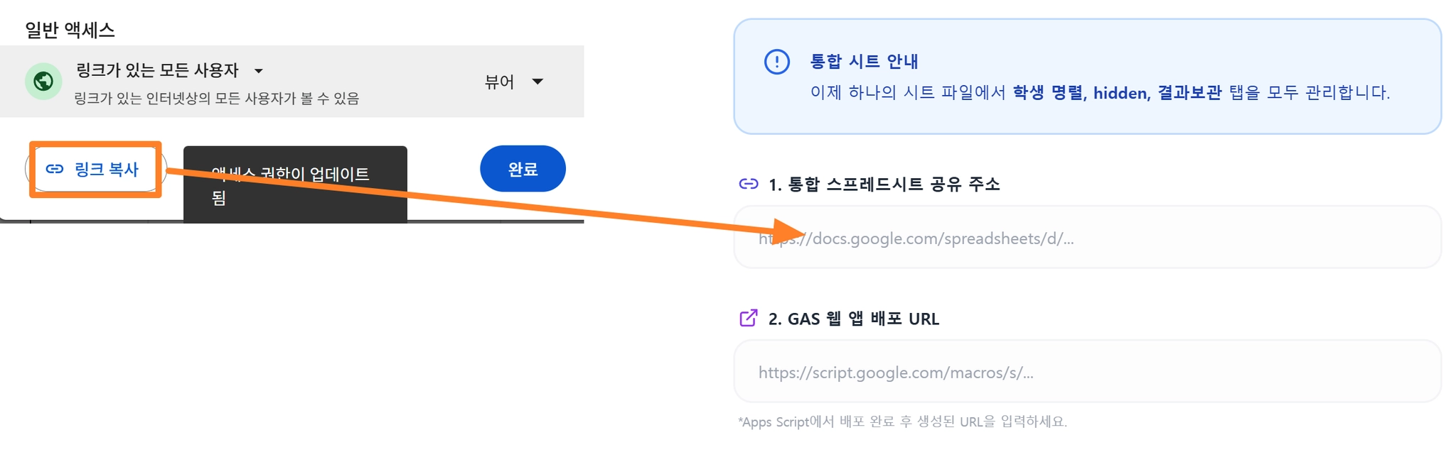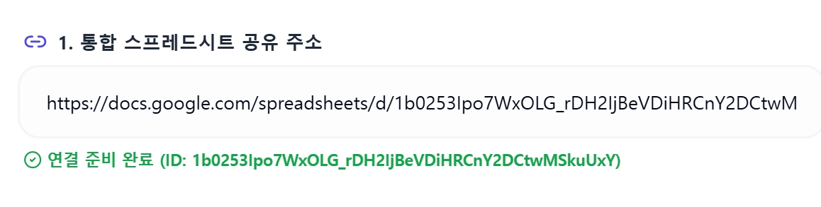 복사된 링크주소를 ‘1. 통합 스프레드 공유주소’에 넣기