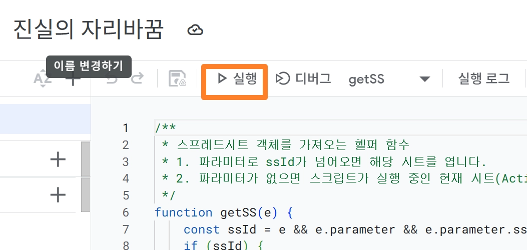 핵심은 구글 앱스 스트립트를 반드시 한번 실행하여 배포하여야 한다는 것
