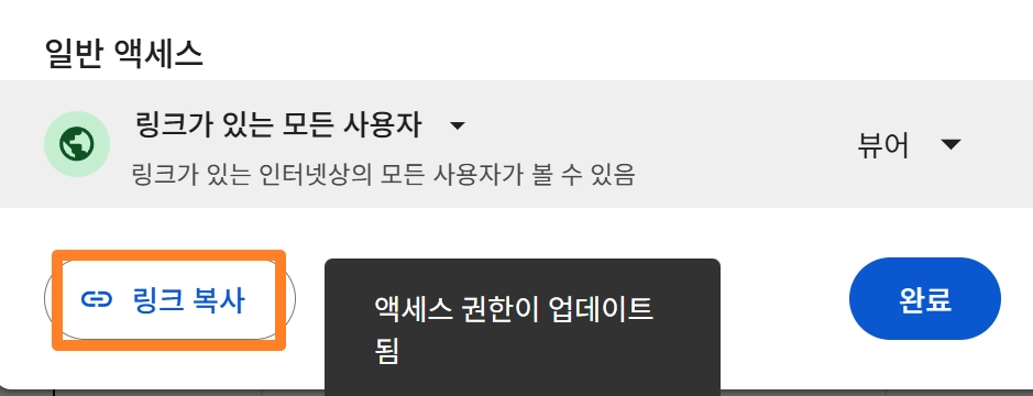 일반 엑세스를 “링크가 있는 모든 사용자”-”뷰어”로 변환