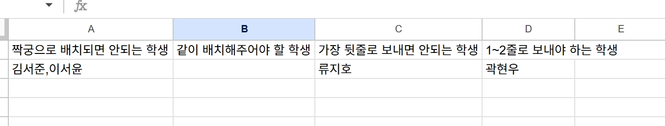 같이 앉으면 안되는 학생들을 미리 셋팅하여 원활한 자리배치가 만들어지는 시스템
