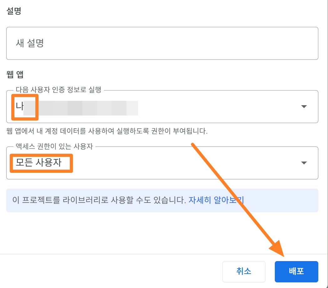 액세스 권한이 있는 사용자를 ‘모든 사용자’로 되어있는지 확인 후 ‘배포’