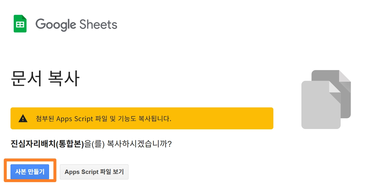 실제서비스 사용을 위해 웹페이지에 접근해보면 구글 시트를 복사할 수 있는 기능이 포함되어 있음