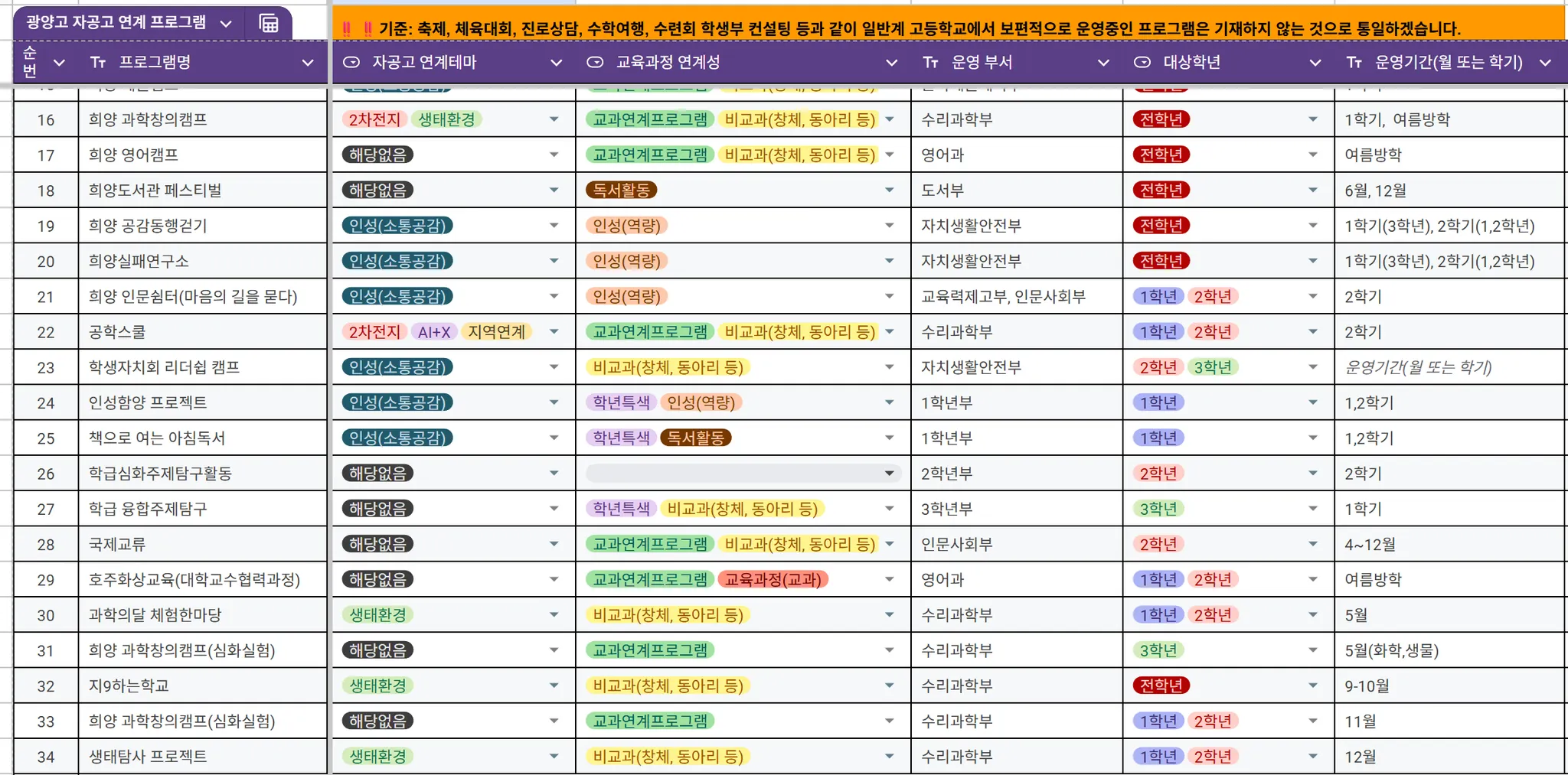 학교가 자율형 공립고라서 정말 많은 비교과 프로그램이 운영중임