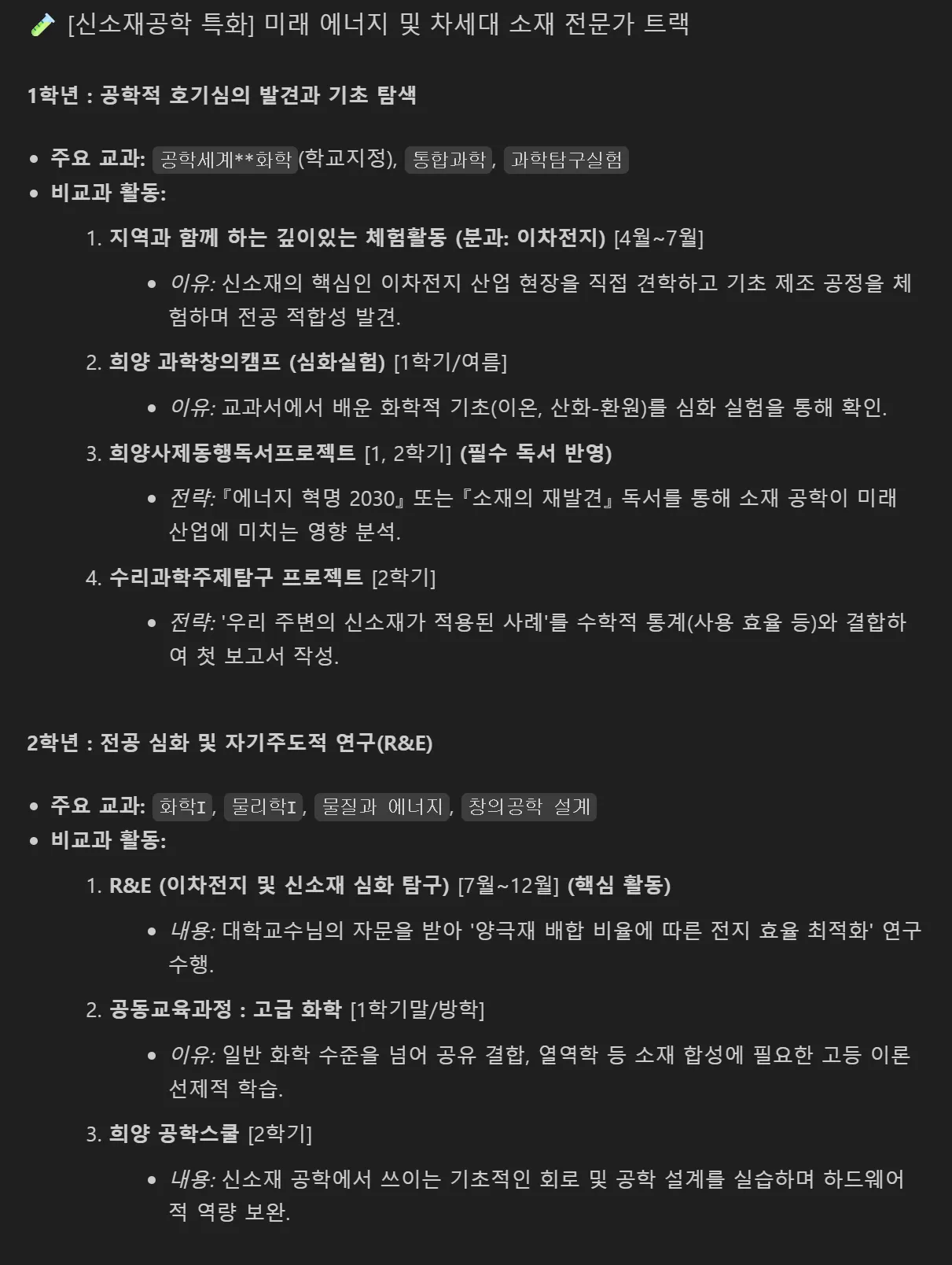 │ │ • 관심 진로 계열 (예: 신소재공학, 의학, AI 등) │ │