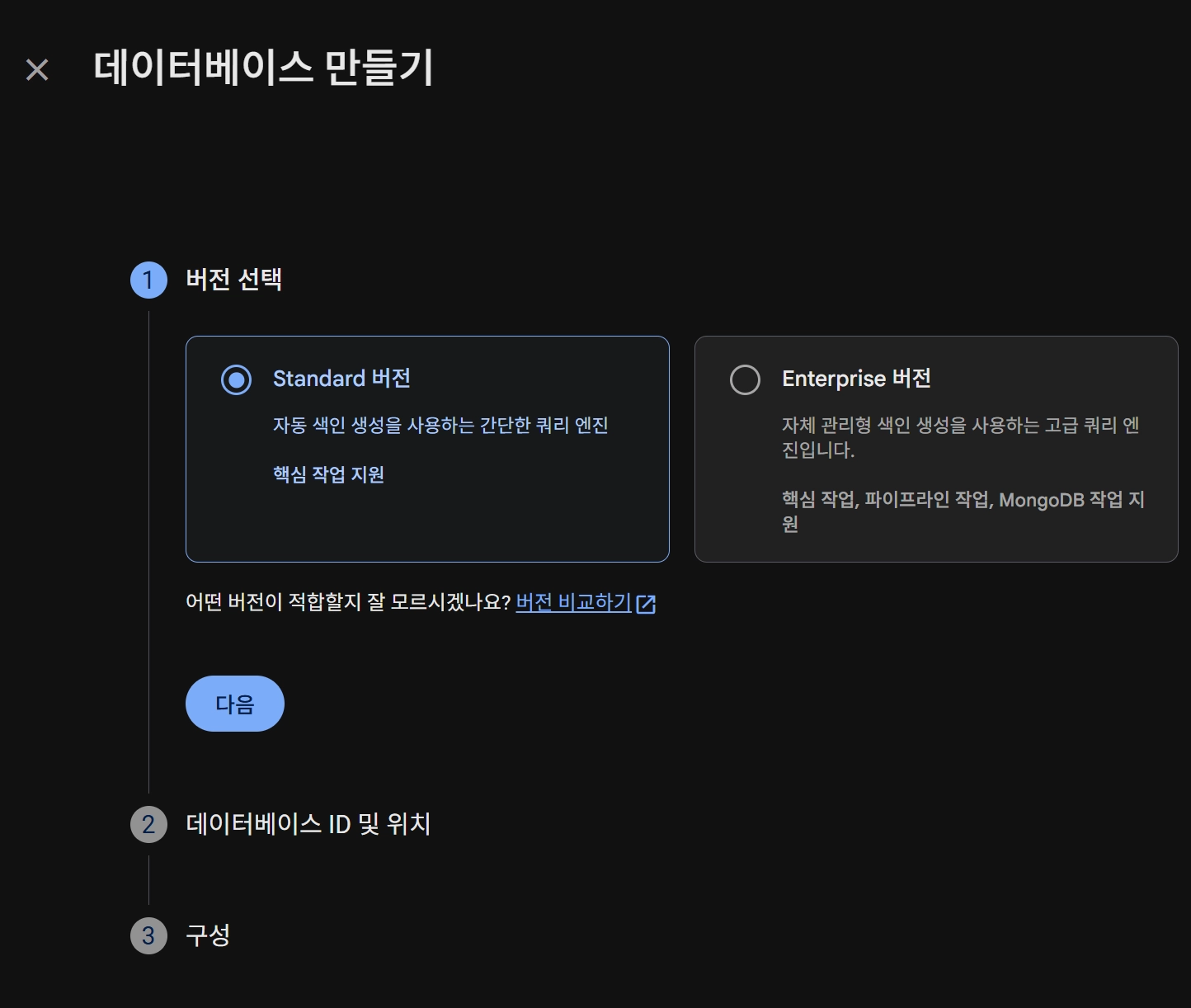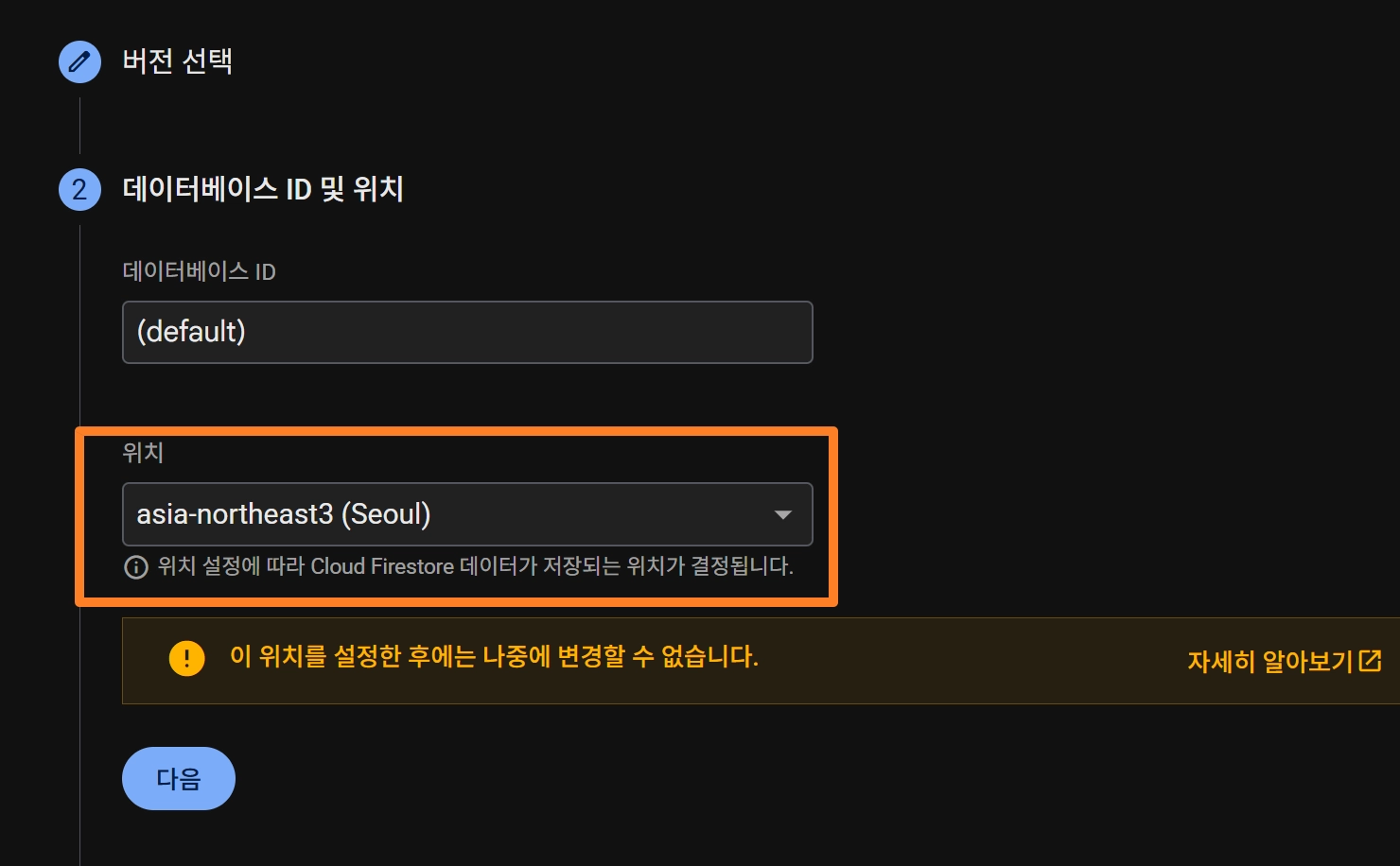 Firebase 콘솔에서 Firestore Database는 현재 생성되어있지 않아. 생성 및 설정방법을 제대로 하나씩 알려줘