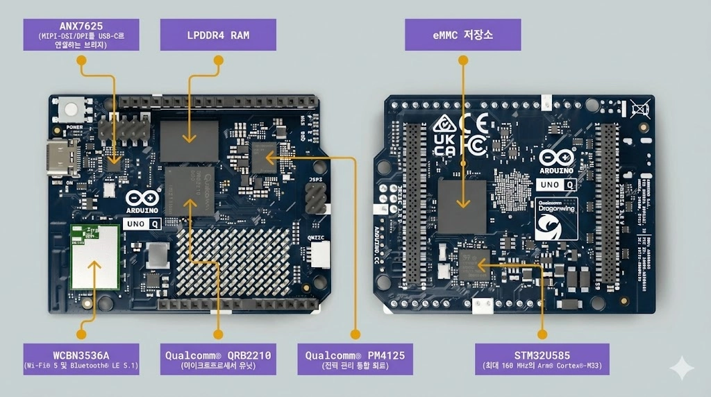 UNO Q: MPU(QRB2210) + MCU(STM32U585) 이중 구성