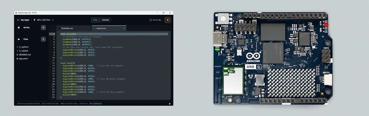 Arduino App Lab: MPU(리눅스)와 MCU를 동시에 개발하는 통합 툴 (보드에는 내장됨, PC에는 추가 설치필요)