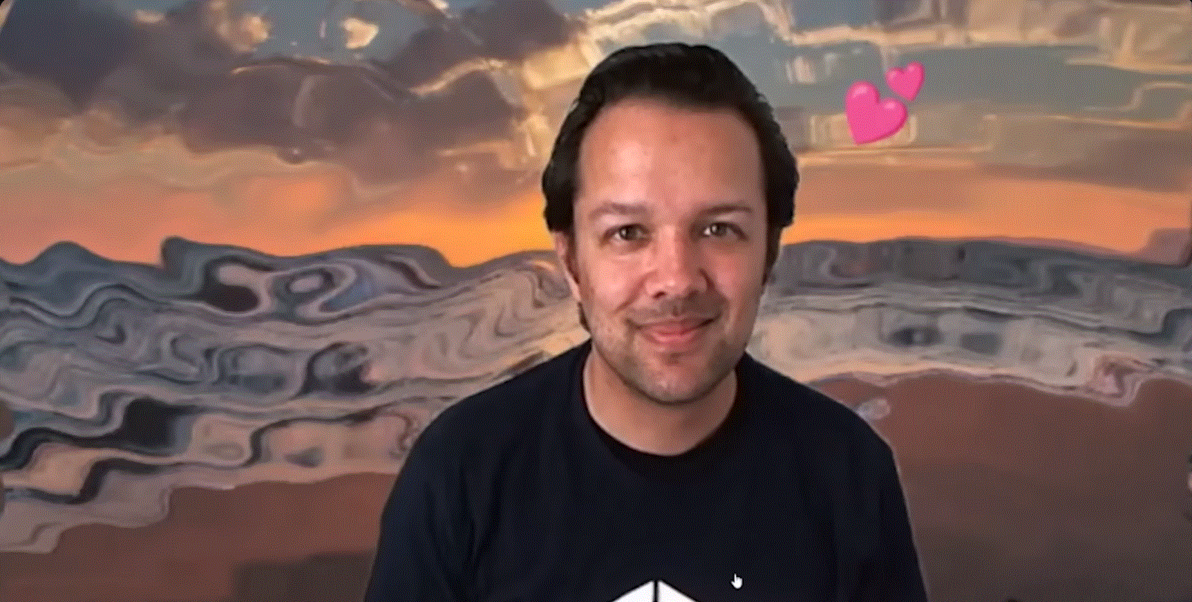 이 예에서 사용자는 가상 배경과 함께 사용자 머리에 AR 스티커를 표시하는 실시간 파이프라인을 구축