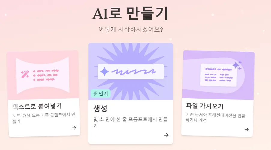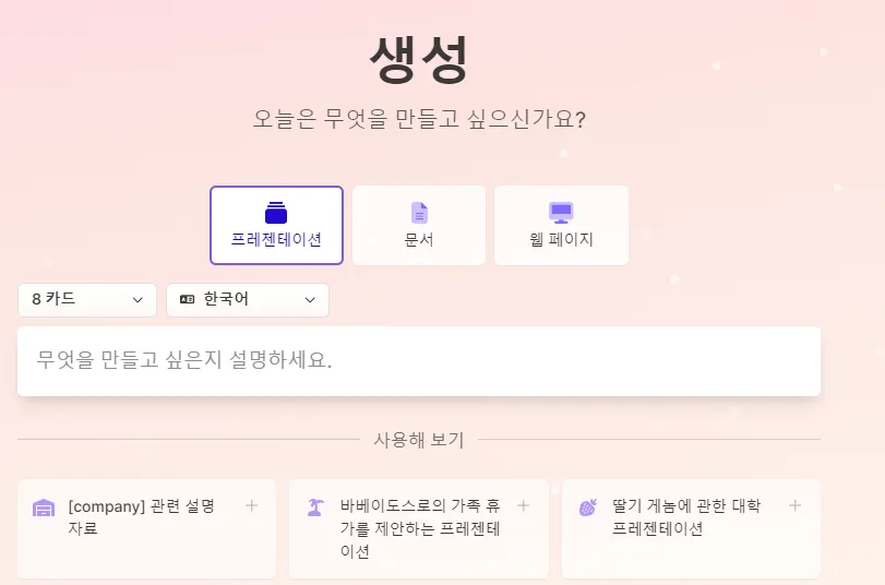 프롬프트 몇 줄로 PPT를 생성하는 기능