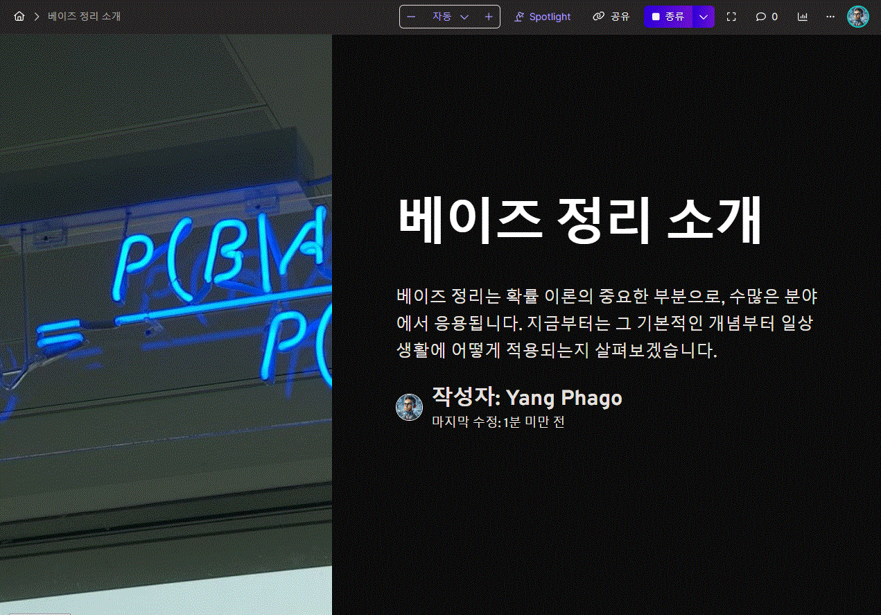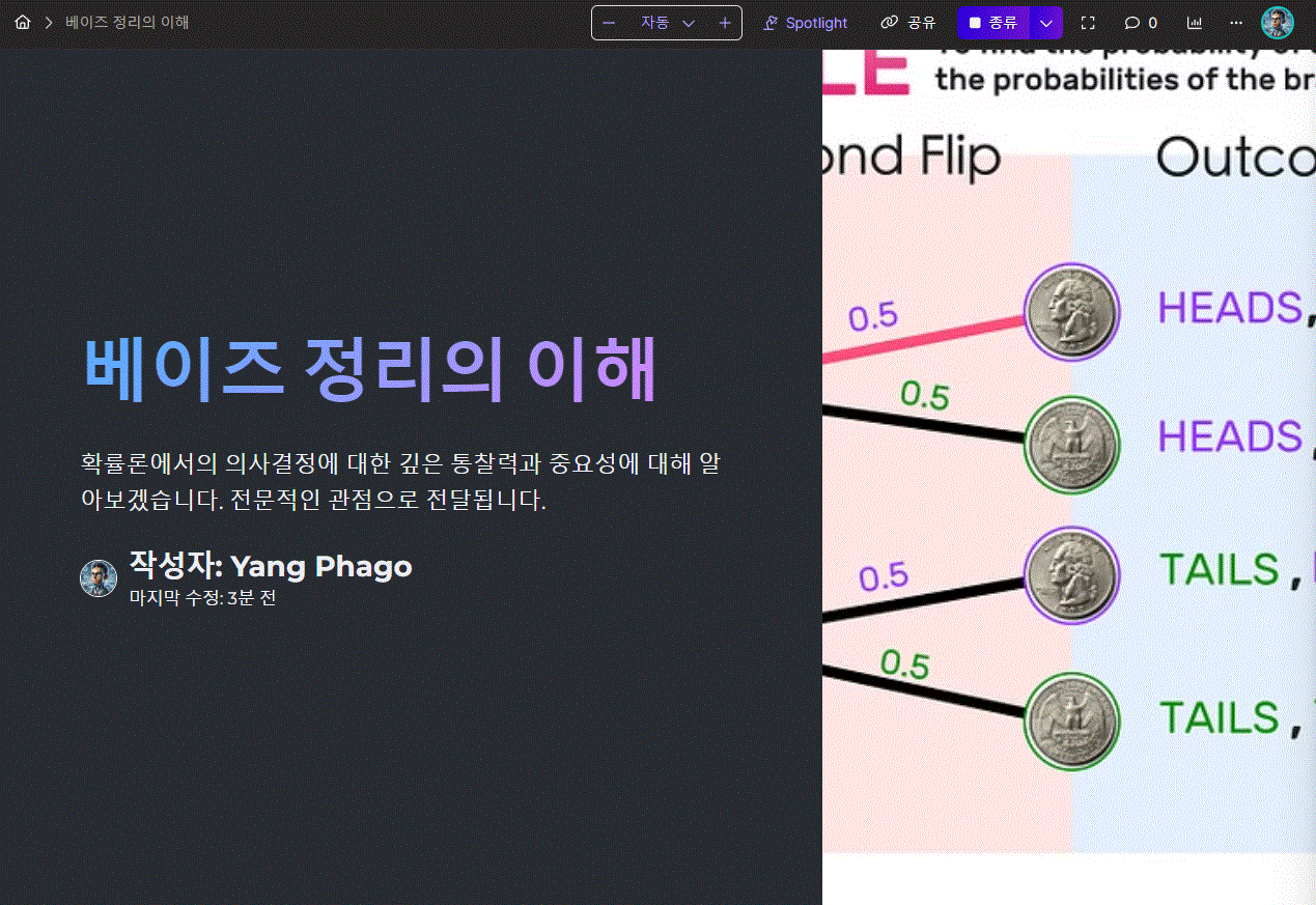 생성 후 만들어진 페이지를 수정할 수도 , 발표를 할 수도, 다운로드 할 수도 있음