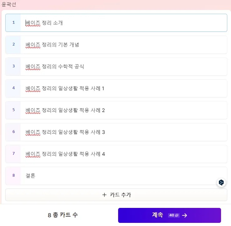 만들어진 개요를 확인 후 ‘계속’버튼을 누르면