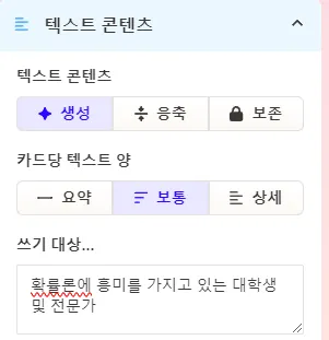 이렇게 텍스트를 입력하면 어떠한 콘텐츠 형태로 생성할 것인지 선택할 수 있음