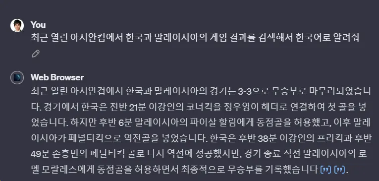 4-2. 한국 vs 말레이시아 게임 검색 결과