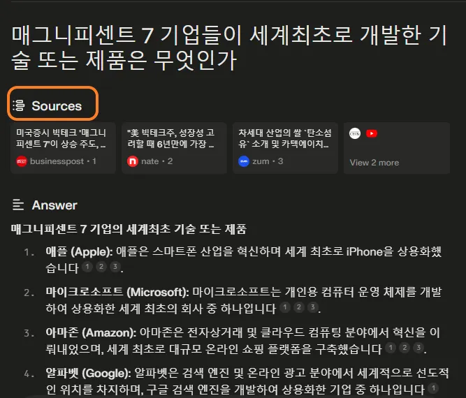 미국의 매그니피센트 7 기업 중 각각의 기업들이 세계최초로 개발하거나 상용화한 기술이나 제품이 있다면 정리해줘, 그리고 반드시 출처를 함께 표기해줘. 이는 너의 답변에 신뢰성을 확인하기 위한 아주 중요한 부분이야